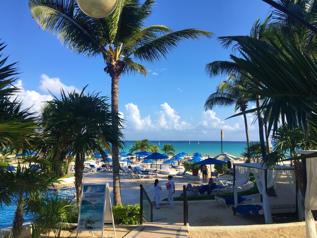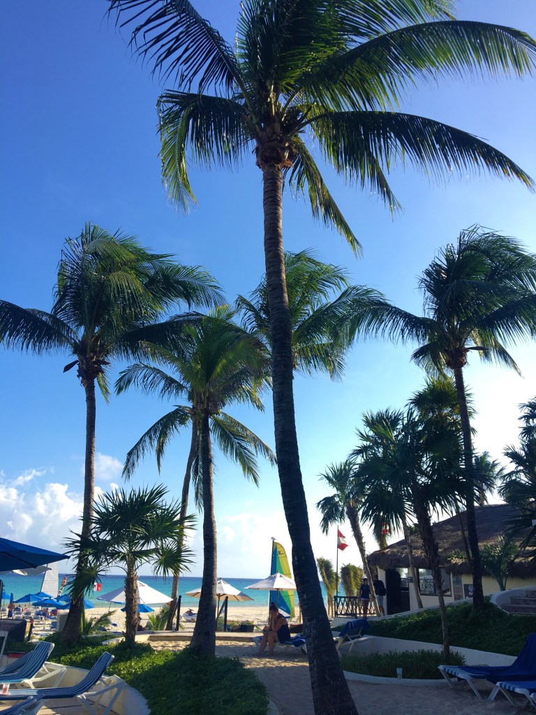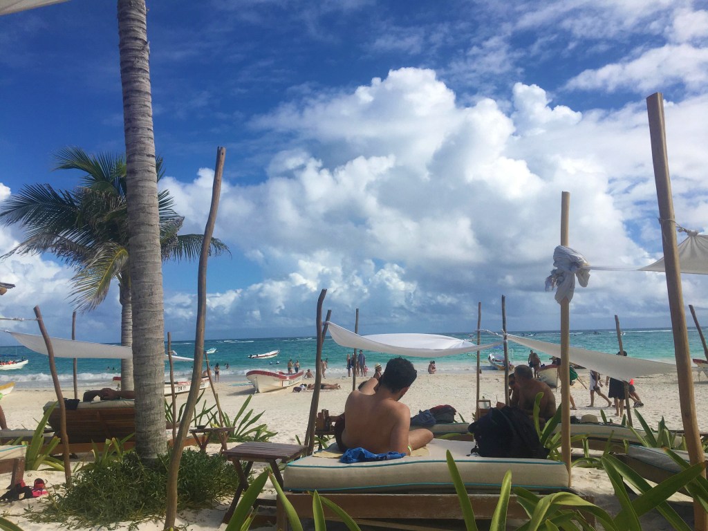 Playa del Carmen et Tulum font partis de La Riviera Maya qui se situe côté mer des Caraïbes. La première est connue pour ses plages , et la deuxième pour ses ruines essentiellement ( mais ses plages aussi) ! Nous avons commencé notre visite par quelques jours à Playa del Carmen , à Playacar plus précisément. Nous sommes allés nous promener sur la « Quinta Avenida » ( 5e avenue). C’est une longue allée avec uniquement des boutiques et stands de souvenirs, où l’on essaie de vous faire entrer à tout prix ! Le touriste est alpagué ( un peu beaucoup comme en Thaïlande). Chose qui me met plus que mal à l’aise . De plus , comme nous nous y attendions c’est ultra touristique. Bon , c’est pas vraiment ce que l’on recherche .Notre hôte Airbnb possédait un accès à un hôtel en bord de mer avec transats gratuits . On a pu profiter de cette option le temps de notre séjour et c’était bien sympathique.