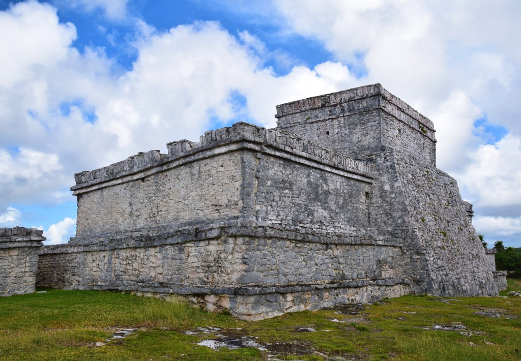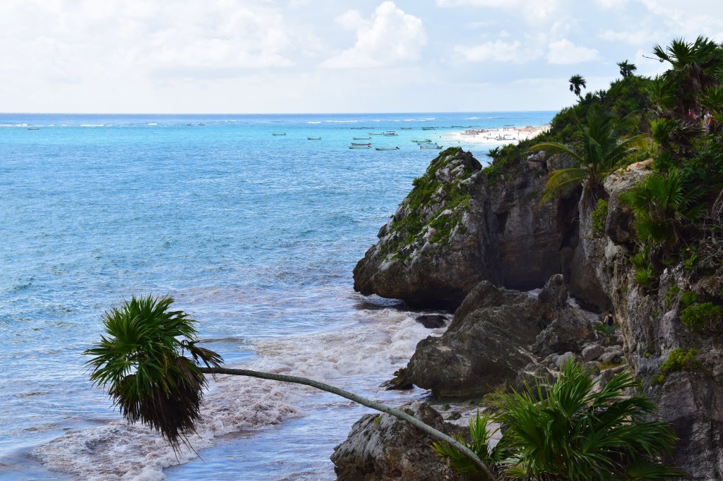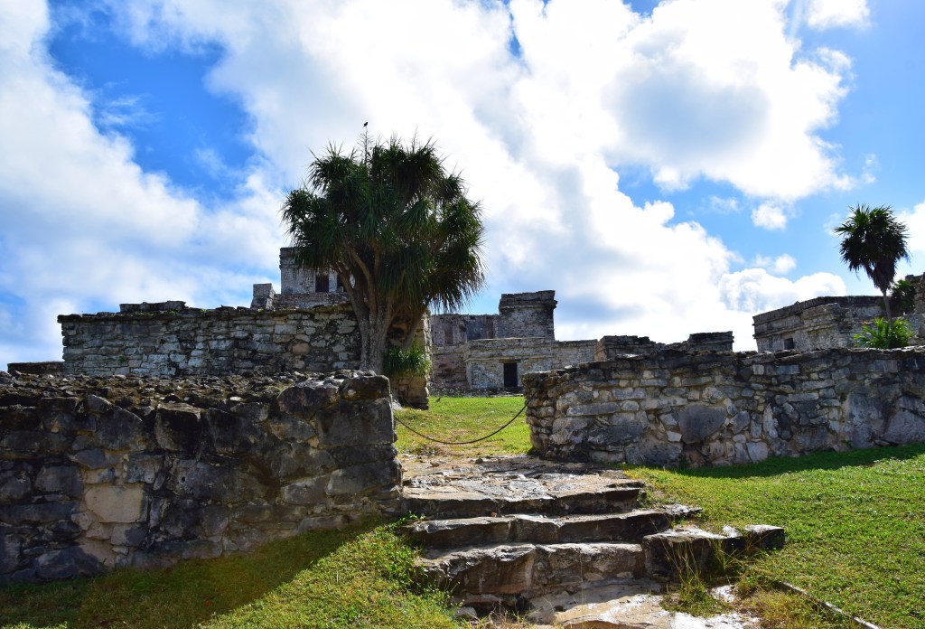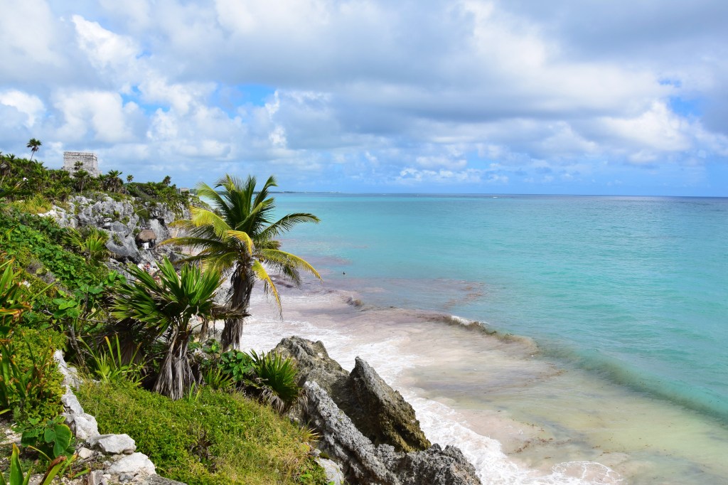 Tulum est connue pour ses plages de sable blanc comme je le disais précédement , mais aussi pour son site de ruines archéologiques maya. Ce site était anciennement utilisé comme un port de pêche et de commerce vers d’autres cités de la région. D’où son placement stratégique en bord de mer. Il faut savoir que le lieu était encore habité par le peuple maya jusqu’au 15e siècle. Les mexicains disent que c’est le seul site maya en bord de mer mais il parait qu’il en existe un autre ailleurs ( au Bélize je crois mais sans certitude). Le cadre est superbe !